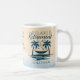 Une plage élégante Relax Hammock Retraite félicitations tasse comprenant une plage de sable côtier couleur de l'eau et bleu mer arrière - plan avec palmiers, hamac et oiseaux. Fait un beau cadeau à donner à quelqu'un à sa retraite. Tout le texte peut être customisé selon les besoins, puis personnaliser avec un nom. message et date. Parfait pour un employé, un employé de bureau, un collègue, une famille ou un ami.