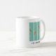 Tasse personnalisée avec une illustration de bouleaux avec des orangers assis sur leurs branches. Arrière - plan vert rétro.