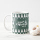 Retro Sage Vert Noël Moderne Minimal Unique personnalisé design de tasse de vacances en famille Avec texte et arbres dessinés à la main modernes.