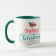 Cette tasse à café unique présente une typographie stylisée qui dit "Joyeux Noël et Bonne Année" en rouge et vert turquoise. Au-dessus du texte se trouve une petite image de camion rouge rétro avec un arbre de vacances fraîchement coupé. Les tourbillons d'or et les étoiles ajoutent de l'intérêt. Les images et le texte sont imprimés sur les deux côtés de la tasse. Classique et élégant pour la saison des Fêtes.