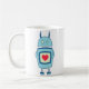 Tasse bleue de robot avec une illustration de bande dessinée d'un robot maladroit bleu de bande dessinée tenant un plat avec un coeur. Cette tasse mignonne convient aux enfants et au geeks qui aiment des robots et des illustrations mignonnes.