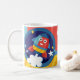 Conception heureuse lumineuse de fusée soufflant dans l'espace.