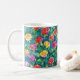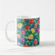 Enjoy your favorite beverages in style with this charming mug featuring a delightful watercolor floral pattern. Its cute design boasts a medley of red, yellow, and lavender roses set against lush foliage, bringing a touch of natural beauty to your morning coffee or evening tea ritual. Add a splash of warmth to your tabletop with this whimsical piece.
