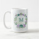 fleurs violettes romantiques avec un peu de tasse à café feuille botanique verte.