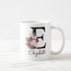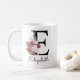 Tasse initiale rose boho moderne, cadeau de Noël ou d'anniversaire parfait pour une fille, une mère, une tante ou une sœur. Personnalisé avec le monogramme de la lettre E et un nom. D'autres lettres sont disponibles dans ma boutique.