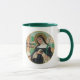 Vous avez le choix entre ajouter un arrière - plan coloré à cette belle tasse ou la laisser telle quelle ! + Rose de Lima (1586-1617) voulait devenir une religieuse, mais son père refusa de l'autoriser. Finalement, cependant, elle a été autorisée à rejoindre le Troisième Ordre de Saint-Dominique pour vivre son apostolat chez elle. + Dans ce portrait stylisé, St. Rose est habité par une habit dominicain, composé d'un wimple blanc, d'un scapulaire crème sur une robe ceinturée de la même couleur, et d'un voile et d'un manteau noirs. Sur sa tête, elle porte une couronne d'épines comme Sainte Catherine de Sienne, son modèle, au lieu de son attribut habituel : une couronne de roses. (Les Roses sont toutefois intégrés dans le cadre ovale élaboré de l’image, qui n’est pas visible ici). Dans sa main droite, elle tient un spray de lis indiquant son statut de vierge consacrée. Dans l'arrière - plan se trouve un paysage tropical péruvien. + Saint Rose de Lima est le premier catholique des Amériques à être déclaré saint. Elle est protectrice des jardiniers et fleuristes, ainsi que du Pérou, des Amériques et des Philippines. + Fête : 23 août + Crédit photo (K 48) : Détail d'une image antique de Saint Rose de Lima, tirée de La vie des Saints de Henry Riancey : Illairie en chromolithographie, d'aprés s les manuscrits de è sicles, par. Kellerhoven (Paris : Librairie Bachelin-Deflorenne, [187] 4]), p. 288, de la bibliothèque privée du concepteur. Franz Kellerhoven (1814-1872), le chromolithographe, est un prêtre-artiste allemand qui émigra à Paris et y installa une imprimerie. Il s'est spécialisé dans les oeuvres d'art basées sur des manuscrits médiévaux, mais il a également fait des lithos de peintures et d'oeuvres architecturales anciennes.
