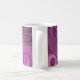 Une tasse au design abstrait élégant. Couleur améthyste violet foncé avec des rubans d'or nichés entre des strates stratifiées. Un design riche et magnifique. Le cadre rectangle blanc est recouvert d'une fausse bordure de feuille d'or, avec votre texte personnalisé à l'intérieur.