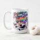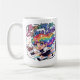 Kawaii chibi girl with rainbow hair sprinting with coffee spilling everywhere