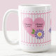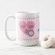 Faites une surprise à la personne qui vous est chère avec un cadeau unique pour la Saint-Valentin. Cette tasse à café personnalisable présente un design charmant et féminin avec des cœurs roses, des fleurs violettes, des rayures ludiques, des pois sucrés et des oiseaux d'amour mignons. Les bordures à festons tendance ajoutent une touche de fantaisie à cette tasse ravissante. Personnalisez-la en ajoutant votre nom et celui de votre bien-aimé pour créer un cadeau unique.