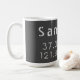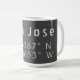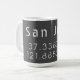 Tasse avec coordonnées de latitude et longitude de San Jose Californie dans une police urbaine moderne sur fond gris foncé