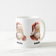 A mug with a cute retro style illustration. Santa Claus with a bushy white beard wearing his traditional red suit.