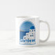 Design de voyage rétro Santorin. Santorin est immédiatement reconnaissable à ses bâtiments blanchis à la chaux en forme de cube ornés d'accents bleus, de falaises escarpées et de couchers de soleil de mandarine qui illuminent le ciel et la mer.