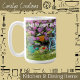 Scène Jardin Mon Heureux Lieu Café Mug. Un signe de printemps ! Vélo de jardin, fleurs à débordement, outils de jardin, sembler familier. Idéal pour maman, grand-mère ou quelqu'un qui aime jardiner !
