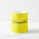 Une tasse jaune avec un motif noir et blanc ondulé, avec votre monogramme de script personnalisé au centre. Il suffit de remplir les modèles de la fonction "personnaliser ce modèle" et de choisir votre tasse de style. Merci d'avoir regardé.