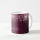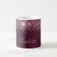 Une tasse élégante, girly et glamour. Arrière - plan profond et foncé, dégradé de bordeaux, décoré de poussière de parties scintillant rose. Personnalisez et ajoutez un nom. Le nom est écrit avec un script de style moderne écrit à la main. Lettres de couleur rose pâle.