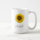 Tasse à café botanique à l'image de fleur de soleil jaune. Avec un élégant écriture de script personnalisable en noir, vous pouvez personnaliser avec vos propres informations. Cela fait un grand cadeau pour cette personne spéciale ou pour vous-même! Bon appétit !