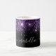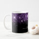 Un arrière - plan noir classique, décoré avec de la poussière de parties scintillant en faux violet. Personnalisez et ajoutez votre nom écrit avec un script de style à la main tendance avec des swashes. Pour que les swashes ne suppriment que le nom de l'échantillon, laissez les espaces ou émoticônes devant et après le nom.