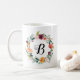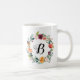 La tasse à café personnalisée est composée d'un monogramme de script initialement encadré par une élégante conception de couronnes florales de style boho avec de belles fleurs d'aquarelle en automne, y compris des roses, dahlias, des fleurs de pivoines et de la verdure, dans une magnifique palette automnale de rouge bordeaux, jaune doré, orange pêche, rose roux et tons verts. Personnalisez avec une initiale de prénom.