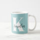 Boug bleu turquoise personnalisé avec votre initiale monogramme dans la grande typographie blanche moderne et votre nom dans un script de signature calligraphie élégant.