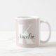 Mug couleur taupe d'inspiration boho personnalisé avec votre initiale monogramme dans une grande typographie blanche moderne et votre nom dans un script de signature calligraphie élégant.