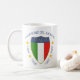 Forza Italia ! Forza Azzurri ! L'Italie a gagné la coupe du monde pendant la 4ème fois. Montrez votre fierté avec une tasse élégante comportant un scudo de l'Italie (bouclier) et tous quatre années de victoire énumérées.