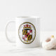 Start your morning with a tribute to the "Land of Pleasant Living" using this Seal of Anne Arundel County MD Coffee Mug. This high-quality ceramic mug prominently features the historic and detailed official seal of Anne Arundel County, Maryland. The design is a masterpiece of colonial heraldry, showcasing the classic Calvert and Crossland family emblems—the same iconic gold, black, red, and white patterns found on the Maryland state flag—topped by a red baron’s coronet and supported by a golden lion and leopard.