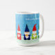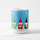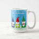 Sept mignons Gnomes de Noël sur Mug bleu clair. Le texte peut être personnalisé. Les nomes apportent amour, bonne fortune et sagesse ! Joyeux Noël!