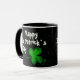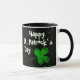 Shamrock Clover Irish Happy St. Patrick`s Day Mug. Un joyeux texte de la Saint Patrick avec des shamrocks irlandais verts pour la chance sur un arrière - plan noir. Vous pouvez modifier le texte.