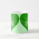 Un design moderne avec deux coeurs verts brillants et des shamrocks brillants à l'intérieur sur un arrière - plan vert. Mug avec un design personnalisable pour vous de personnaliser avec votre propre couleur arrière - plan, texte, images et idées. Disponible dans toutes les options de style. Créé à l'aide de photographies originales et de techniques numériques de Jess Perry.