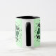 Un beau shamrock avec des tourbillons et des symboles Fleur de lis sur un arrière - plan vert pâle sur une mignonne tasse.