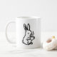 A calm and cozy sitting bunny holding a steaming mug of coffee. This minimalist doodle captures the perfect morning vibe in a simple, hand-drawn style.