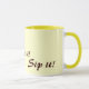 Ce slogan clair et descriptif "Grip it! Astuce-le ! Sirotez-le !" devrait apporter un sourire à tous ceux qui aiment leur tasse de thé ou de café, mais, quand il s'agit de cela, le slogan convient à toute boisson liquide. La tasse fait un grand cadeau et convient à n'importe qui, ou peut-être que vous voulez juste vous offrir un peu de ce que vous voulez.