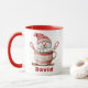 Ajoutez une touche personnelle à vos matinées de vacances avec cette tasse de cacao de bonhomme de neige personnalisable! Doté d'un adorable bonhomme de neige dans une tasse remplie de marshmallow, surmontée de sucres de canne et d'un casquette tricoté douillet, cette tasse festive peut être personnalisée avec n'importe quel nom. Parfait pour le cacao chaud, le café ou le thé, il fait un cadeau de Noël réfléchi pour les enfants, les amis, la famille et les amateurs de snowman.