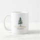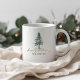 Des tasses de Noël personnalisées avec un design rustique et enneigé avec un nom personnalisé.
