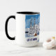 A mug with a beautiful winter scene including snowy mountains, rustic cabin and snow covered evergreens. The image and text can be personalized. Original artwork by W.B.