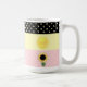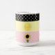 Belle tasse avec soleil et pois sur rayures noires, jaunes et roses.