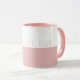 Une tasse à café rose et blanc féminine personnalisée avec nom et profession (architecte)