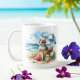 L'été vibes tasse avec une souris d'aquarelle avec des fruits sur la plage. Personnalisable .