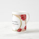 This mug is imprinted with a Bach Solos Suite for Cello. It was purchased as a thank you gift for a professional cellist friend who often performs this work. The cup is made of a high-grade ceramic and is fairly light. The walls are not too thick and it is a small to medium size. It's well finished, has a high-gloss glaze, and looks very elegant. The Bach Solo Suite score on the example I received was clear and had high contrast. Even though the staffs were small, the music was easy to read. The cellist who received this cup immediately knew what the music was as soon as she set eyes on it.