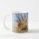 Une photographie de fond d'une coquille d'araignée sur une plage de sable contre le ciel bleu et les nuages moelleux est imprimée des deux côtés de cette tasse. L'image apporte avec elle le sentiment de paix et de calme. On entend presque le surf doux, on sent l'air salé et humide et le sable chaud baigné de lumière du soleil. Il peut même vous faire oublier les bruits des machines à copier et le refroidissement de la climatisation redistribuée. Vous devrez probablement regarder la tasse pendant un moment pour cet effet.