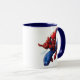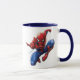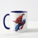 Spider-Man saute, bras tendu et filme la toile dans ce graphique de caractères extraordinaire.