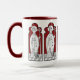 Le 16 novembre 1538, par la Proclamation royale, Henri VIII proscrivit saint Thomas Becket (1120-1170). L’interdiction signifie que le sanctuaire de Becket dans la cathédrale de Canterbury a été démantelé et détruit ; ses os ont été brûlés et ses cendres dispersées ; ses images et ses inscriptions ont été défigurées ; et toutes les commémorations liturgiques de lui ont été interdites. Les églises qui avaient été nommées en son honneur ont été réconsacrées à son homonyme saint Thomas l'apôtre. + Bien sûr, la proscription de Becket faisait partie du programme plus général du Roi connu sous le nom de Dissolution des Monastères. Mais étant donné la singularité de Becket et la véhémence de sa proscription, les historiens ne peuvent s’empêcher de spéculer qu’il y avait aussi une rancune plus personnelle contre le prélat à l’oeuvre : le coque de Becket était trop proche pour se consoler des événements récents. + En 1535, Henri VIII avait fait martyr St Thomas More par sa décapitation. Outre la coïncidence de leurs noms, les deux Henrys (II et VIII) et les deux Thomases (Becket et More) avaient beaucoup en commun : les deux Thomases avaient été amis avec leurs monarques respectifs. Tous deux avaient été Chanceliers d'Angleterre. Tous deux avaient défendu l'Eglise sur l'Etat. Tous deux étaient considérés comme des traîtres à la Couronne. Et les deux Henrys se sentaient trahis sur un plan profondément personnel. Ironiquement, aujourd'hui, les deux Thomases sont non seulement vénérées comme saints dans l'Église catholique romaine, mais aussi dans la Communion anglicane. + Il n'y a aucune représentation de Becket de sa vie. Tous les portraits sont posthumes et sont soit dérivés d'un original perdu ou imaginaire. Néanmoins, l'iconographie des premières oeuvres est remarquablement cohérente entre les quelques oeuvres monumentales restantes en Angleterre et les peintures et sculptures continentales. Dans ceux-ci, Becket est habituellement représenté dans son premier : grand, mince, rasé, garni pour la messe dans le chasteté et le pallium, et portant un lectionnaire ou un livre de l'Évangile. Parfois, il porte sa mitre ; parfois, il porte sa croix archiépiscopale. On ne fait aucune référence à son martyr. C'était inutile. Tout le monde connaissait l'histoire. + L'image ici est l'une des rares à avoir survécu à la purge en Angleterre. Il s'agit d'une gravure d'une peinture qui était autrefois recouverte de blanchisserie pour la préserver. Datant du XVIe siècle, il représente une étape supplémentaire dans le développement de l’iconographie du saint. Ici, saint Thomas habillé de toutes les canoniques tient sa croix archiépiscopale dans sa main gauche et une épée inversée, l'instrument de son martyre, à sa droite. Hélas, l'épée n'est plus à voir. Pourtant, la simple présence d'une épée dans une oeuvre d'art n'est guère individuatrice. Dans une étude iconographique en deux volumes d'environ 1000 saints, une épée est associée à plus de 15% ou 150 d'entre eux ! Parmi ces 150 - qui comprennent les femmes vierges chrétiennes primitives et les saints soldats masculins - environ 35 sont évêques ou archevêques. Parmi ceux-ci, St. Thomas finirait par recevoir un motif tout seul : une épée perçant sa tête miteuse d'un côté à l'autre (Voir P 005). + Fête : 29 décembre + Crédit image (M 033) : Gravure ancienne de Francis Joseph Baigent en 1853 d'une peinture de St. Thomas Becket découverte à l'église de Charité Stoke, Hampshire Angleterre, en 1845, publié à l'origine dans le Journal of the British Archaeological Association, vol. X (1855), plaque 6, p. 74. Le tableau est sur le devant gauche de la Tombe murale de John Waller, Esq., c. 1525. Nous avons donné un aperçu beaucoup plus large à l'arc de la feuille de trèfle.