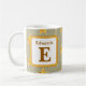 Cette tasse monogramme est une excellente façon d'accueillir un nouveau jour. Un motif étoilé jaune vif apparaît contre un arrière - plan gris. Votre monogramme est présenté dans un carré du centre ainsi que le nom de famille des deux côtés de cette tasse de thé ou de café du matin. Customisez facilement les couleurs et le monogramme initial pour convenir à votre désir. Design original - C. McGouldrick