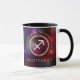 Montrez votre personnalité avec cette tasse simple mais frappante, qui présente le caractère astrologique stylisé pour Sagittarius, le neuvième signe du zodiaque occidental, encerclé par quatre traits clés de ceux nés sous le symbole de l'archer et rendu sur un starfield peint de poussière d'étoile polychromatique à travers la nuit de velours noir! Ajoutez vos traits de personnalité à votre signe et ajustez les filtres et les polices selon vos envies ! Reverse affiche un design identique. Design © W.H. Sim. Voir plus sur zazzle.com/expressionsoccasions