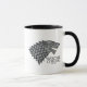 Jeu de Trones | Sigil for House Stark avec une tête de loup-de-reve et la devise : "L'hiver arrive".