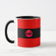 Mug rayé rouge et noir mode. Le texte géant peut être personnalisé. Libérez votre génie géant intérieur ou habilitez quelqu'un avec ce cadeau !
