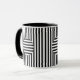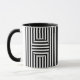 Tiled image of black and white stripes. In the center of the tiled image is a circle where the stripes are altered to horizontal creating an optical illusion.