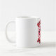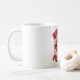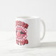 une tasse en céramique blanche au design audacieux et ludique. Au centre du design se trouve une paire de lèvres rouges brillantes tenant une sucette en forme de coeur. L'arrière - plan dispose d'un motif en damier rose et blanc qui ajoute une ambiance rétro à l'image. Autour des lèvres se trouvent les mots "SUCKER FOR YOU" (SUCKER POUR VOUS) en grandes lettres à bulles remplies de rose et surlignées de noir. L'esthétique générale est amusante et flirtante, parfaite pour un cadeau léger, surtout autour de la Saint-Valentin.