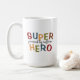 Faites savoir à votre père qu’il est votre super-héros à l’occasion de la fête des pères, de son anniversaire ou de n’importe quel jour avec cette tasse personnalisable. Doté d'un design de typographie simple dans les tons muets de rouge, bleu, vert et or, ce mug rappellera à votre père combien il signifie pour vous pendant sa routine matinale. Personnalisez ce design avec des sentiments comme "Powered by Caffeine" (ou café ou thé) pour créer un cadeau significatif à l'appréciation de l'express pour votre père.