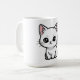 Charming white cartoon cat sitting with large, sparkling, adorable eyes.